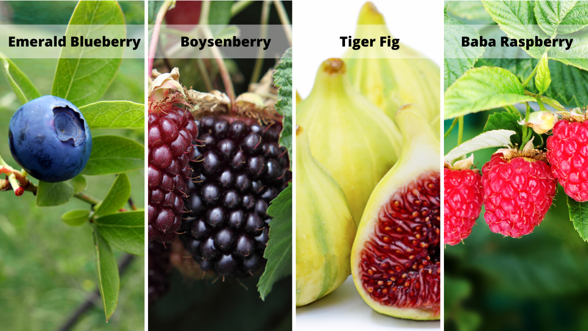 Blackberries etc. including Baby Cakes Blackberry, Boysenberry, Prime-Ark Freedom Blackberry, and Triple Crown.